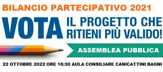Bilancio Partecipativo 2021 del Comune di Canicattini Bagni, sabato 22 ottobre 2022 l’assemblea pubblica per la scelta da parte dei cittadini dei progetti da finanziare