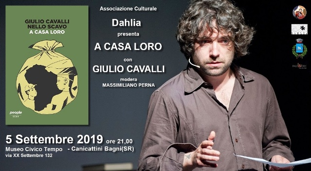 Giovedì 5 Settembre 2019 al Museo Civico Tempo di Canicattini Bagni il secondo appuntamento con l’autore, di scena lo scrittore e attore Giulio Cavalli e il suo “A casa loro” sui temi dell’immigrazione, scritto con il giornalista Nello Scavo