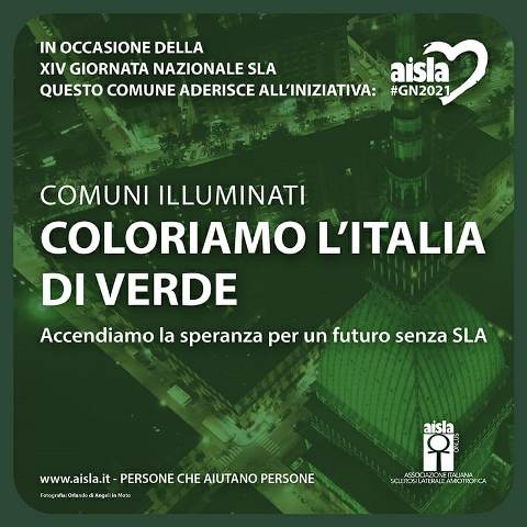 L’Amministrazione comunale di Canicattini Bagni aderisce alla XIV Giornata Nazionale di sensibilizzazione sulla SLA e sabato sera illumina di verde il Palazzo Municipale