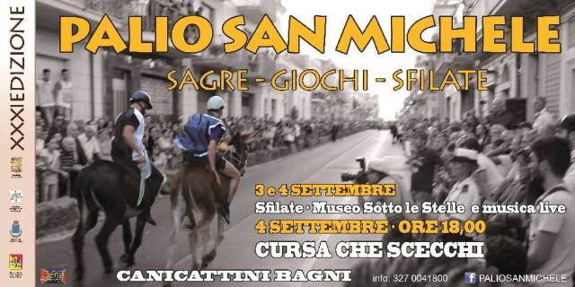 Anche in questa 31° edizione protagonisti del “Palio di San Michele” saranno dunque gli otto Quartieri di Canicattini Bagni (Balatazza, Matrice, Pizzumuru, Priuolu, San Giovanni, Santuzzu, Vadduni, Vigna ri Serrantinu), con le sagre enogastronomiche e la promozione delle produzioni tipiche locali, e la rievocazione storica, il 4 Settembre, alle ore 16:30; con la “Sfilata in costume”, dell’arrivo nella cittadina, attraverso l’ex strada di Scala Bagni, dei contadini che, negli anni di fine '800 inizio '900, tornavano dalle campagne in occasione delle celebrazioni religiose locali.
